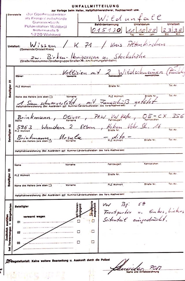 meiner erster luftgekühlter Unfallbericht mit tierischen Opfern....