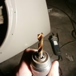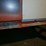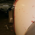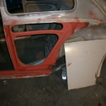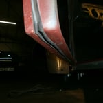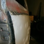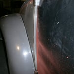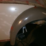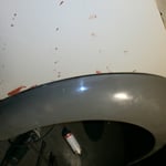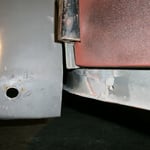 Hinten rechts ist sie auch schon dran, die Heckschürze kann ich mir dank dem NOS Teil vom Herrn W. aus N. auch sparen :-) Hinten links fehlt noch eine, die hab ich für vorne gerbaucht, da hats drei Löcher reingebrannt als die Elektroden zuweit runterwaren