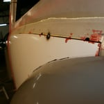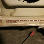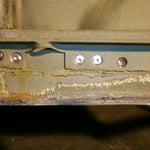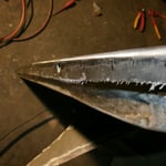 Das Ende der Regenrinne hinten rechts. Nach dem Strahlen waren Löchlein sichtbar, da skonnte natürlich so nicht bleiben