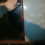 ...am Ende der untersten Leiste. Konnte auf der Rückseite noch nicht entlacken ,das folgt aber noch. Seeeehr geil ist die schweißbare Lasierung ! :-)